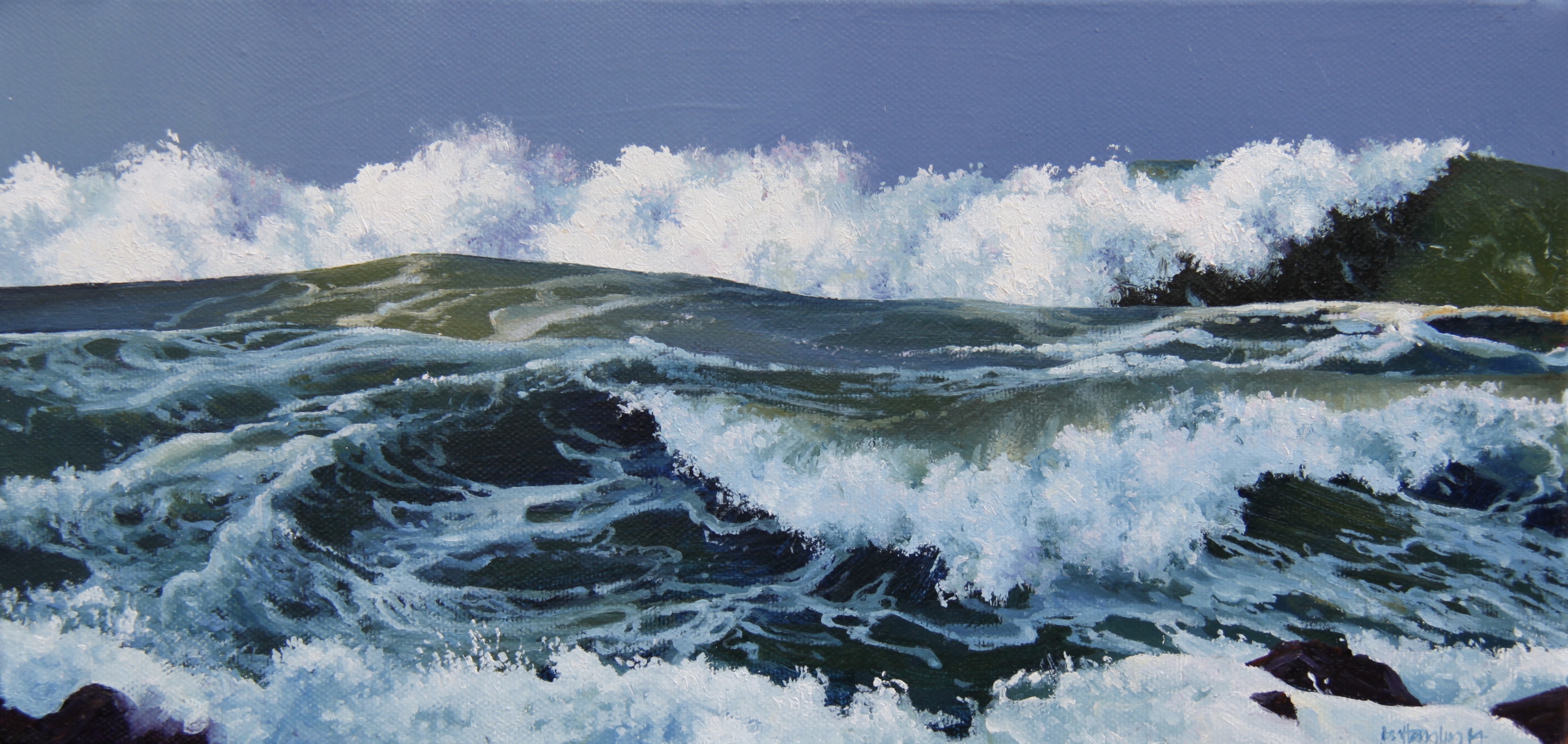 “Rising Tide”, oil on canvas, 200 x 400mm NZ$1,250.