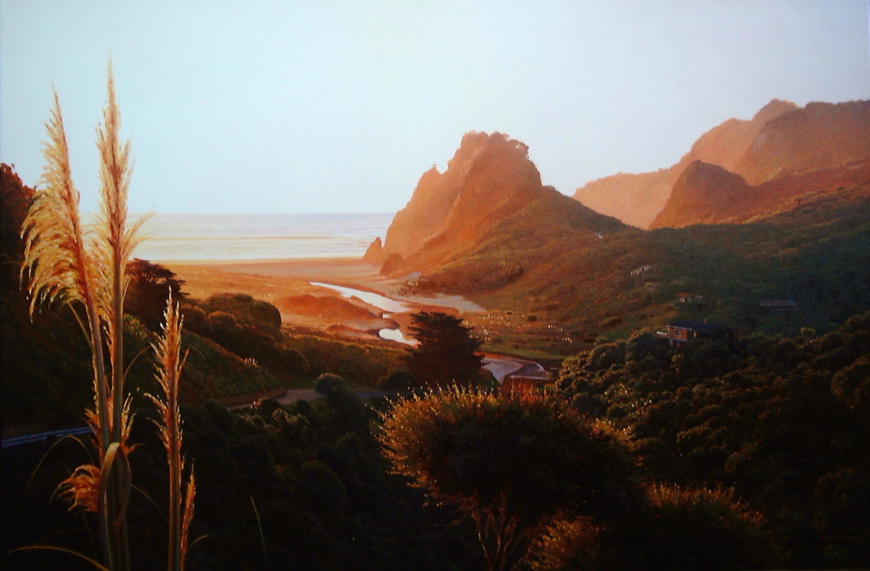 My painting here is at Kare Kare Beach on the wild west coast of Auckland. Its a beautiful, special place and there can be felt there a primal power that opens your heart and connects you to all things, if you allow it. There seems no need for any role to play, only to be open to the experience of just being,
