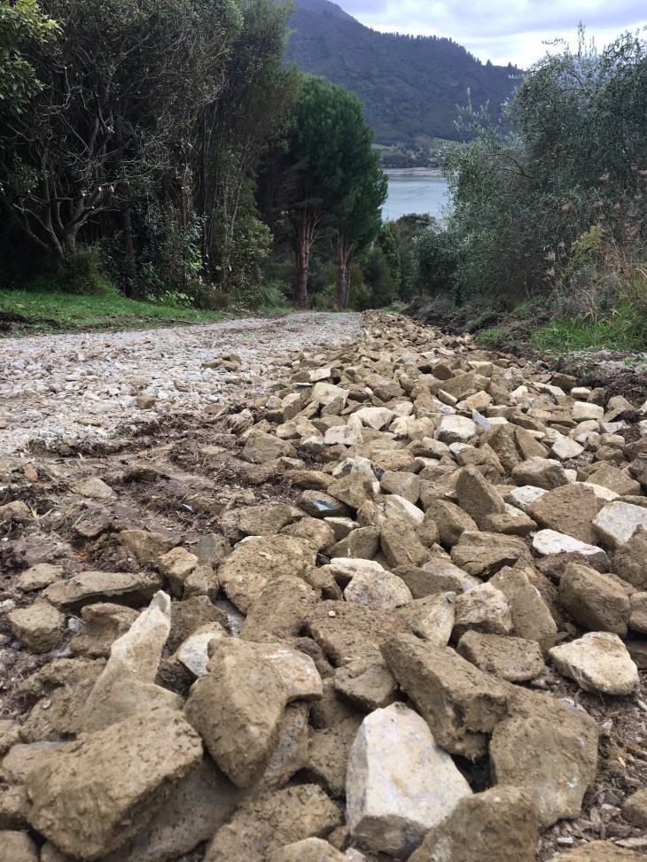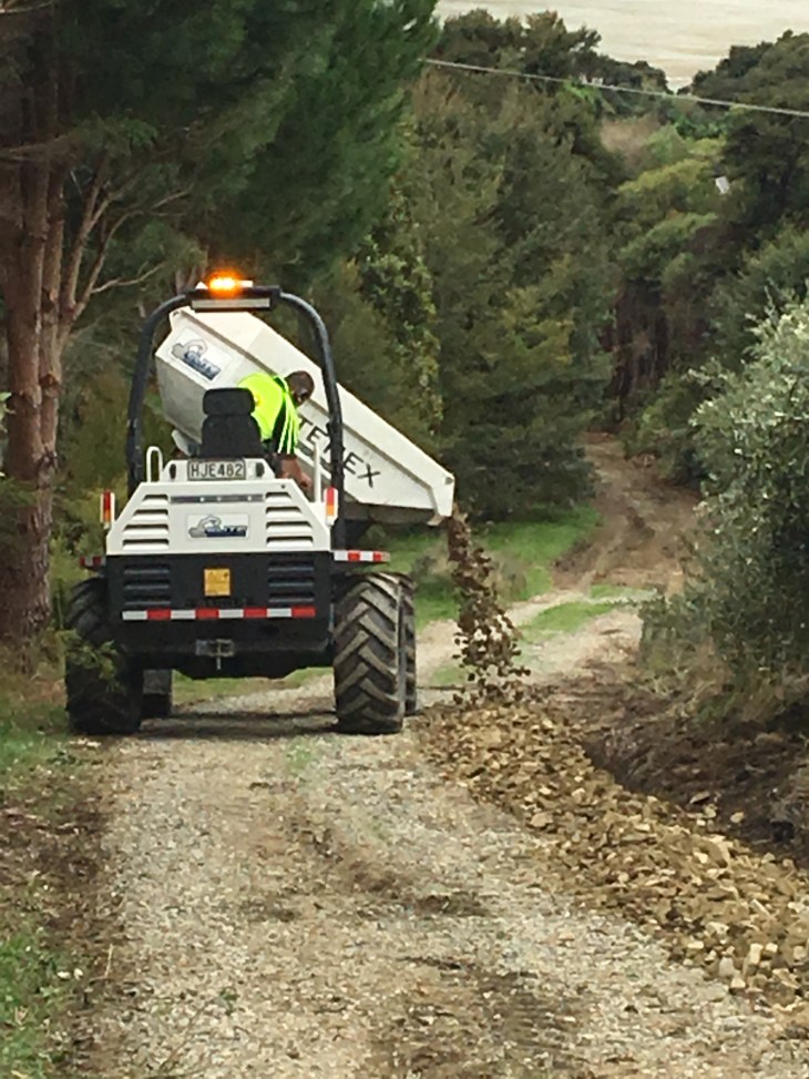 Some serious work on the driveway was done and a temporary crane pad was then excavated in preparation for getting all this heavy equipment and a house up our steep hill! A serious challenge that…