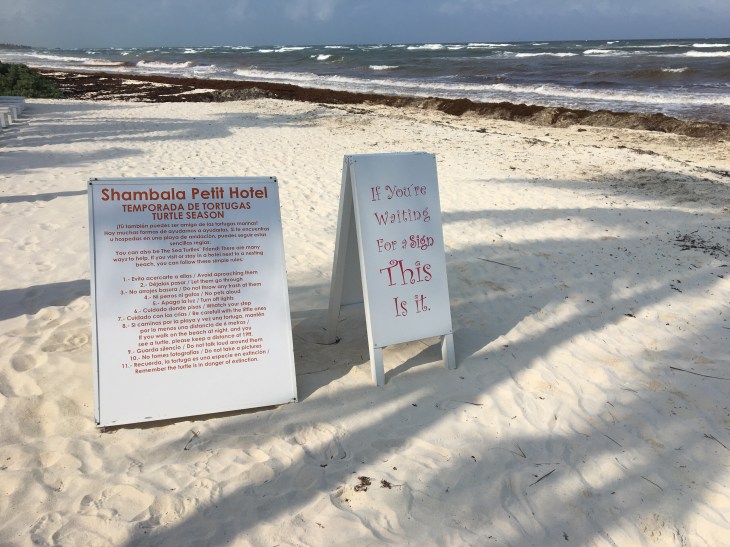 Looking for a sign? The beach has lots of signs for massages and yoga sessions and all manner of meditations and the healing arts… there’s bound to be a sign that right for the occasion, even if you’re a turtle!