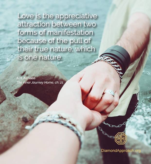 “The experience self-realization, of knowing oneself as self-pervasive consciousness, is felt experientially as an exquisite sense of intimacy. The self-existing consciousness experiences itself so immediately that it is completely intimate with its reality. The intimacy is complete because there is no mediation in the self’s experience of itself. We feel an exquisite stillness, a peace beyond all description, and a complete sense of being truly ourselves. We are so totally ourselves that we feel directly intimate with every atom of our consciousness, completely intimate with and mixed with our true identity. The contentment is like settling down peacefully at home after eons of restless and agonized wandering. Clarity and peace combine as the feeling of exquisite, contented intimacy, which is totally independent of the particulars of our situation, beyond the conceptual confines of time and space. The peace and contentment do not come from accomplishing anything, nor are they a result of anything. They are part of the actual feeling of being truly ourselves. We are not only intimate with ourselves, but our very presence is intimacy.” ~ A H Almaas